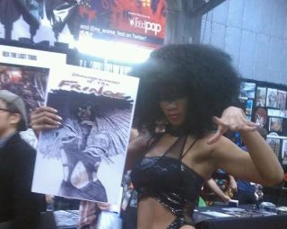 Here are some great pics from the recently passed New York Comic Con! Eric and I were working the Con, and got a great lift from the Lovely Models who looked like they were born to play the Parts of JIYA of GALTOW and JASIRA from The FRINGE!